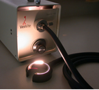 A bright (150 watts) fiber optic based transilluminator for mapping of varicose veins and vein access. This device comes with either a large ring for adults or small ring for pediatric applications. It is excellent for mapping superficial varicose veins and finding feeder veins for sclerotherapy.